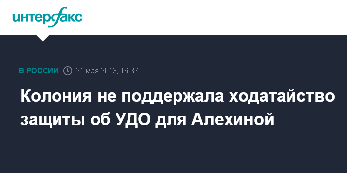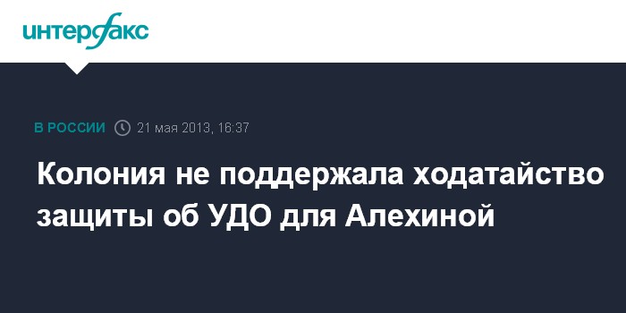 Пермь. 21 мая. INTERFAX.RU - Руководство колонии N28 в городе Березники Пермского края, где отбывает наказание осужденная участница группы Pussy Riot Мария Алехина, не поддержала намерение ее адвокатов ходатайствовать об условно-досрочном освобождении.