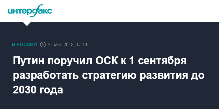 Сочи. 21 мая. INTERFAX.RU - Владимир Путин обозначил крайний срок утверждения стратегии развития Объединенной судостроительной корпорации до 2030 года.