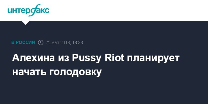 Пермь. 21 мая. INTERFAX.RU - Осужденная участница группы Pussy Riot Мария Алехина намерена начать голодовку из-за того, что Березниковский суд отказал ей в личном присутствии на рассмотрении УДО, сообщил агентству "Интерфакс" муж другой участницы группы Надежды Толоконниковой Петр Верзилов.