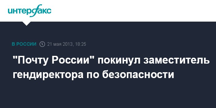 Москва. 21 мая. INTERFAX.RU - Кадровые изменения в руководстве ФГУП "Почта России" продолжаются - в понедельник уволился по собственному желанию заместитель гендиректора по безопасности Михаил Кузьмин.