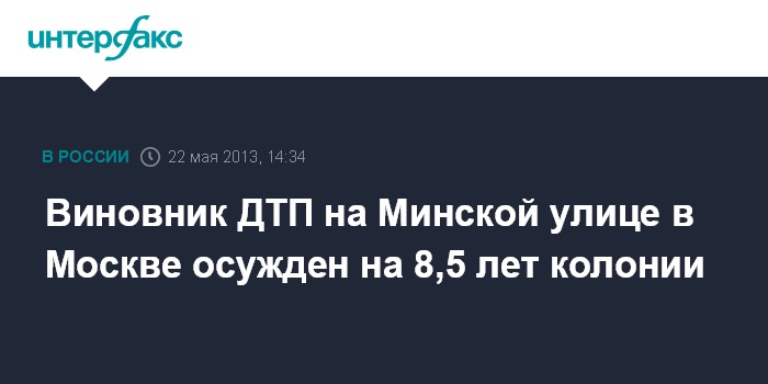 Москва. 22 мая. INTERFAX.RU - Никулинский суд Москвы признал виновным Александра Максимова в совершении в состоянии алкогольного опьянения ДТП на Минской улице, унесшем жизни пятерых воспитанников дома-интерната и двоих взрослых.