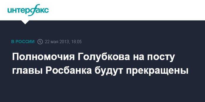 Полномочия Голубкова на посту главы Росбанка будут прекращены