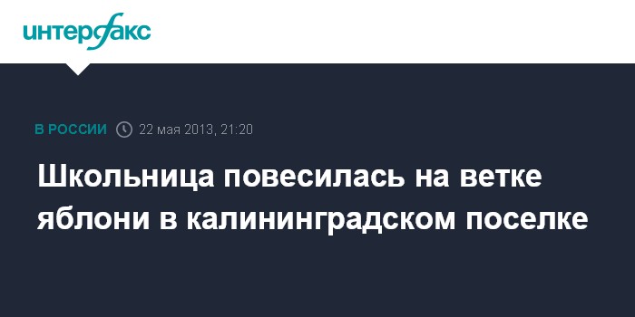 Москва. 22 мая. INTERFAX.RU - В Калининградской области выясняются обстоятельства самоубийства 15-летней девушки, тело которой с признаками повешения было обнаружено в среду в одном из поселков Правдинского района, сообщает СКР.