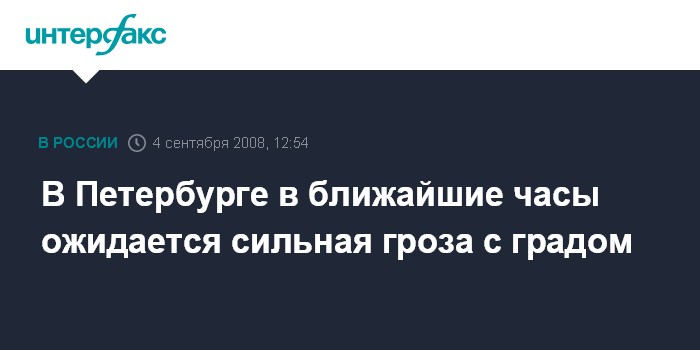 "В ближайшие 1-3 часа по Петербургу ожидается сильная гроза с градом и кратковременным усилением ветра до 15-20 м/с", - сообщили "Интерфаксу" в управлении.