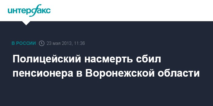 Полицейский насмерть сбил пенсионера в Воронежской области