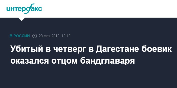 Махачкала. 23 мая. INTERFAX.RU - Убитый в четверг в ходе боя в Карабудахкентском районе Дагестана боевик предварительно опознан как Ибрагим Абусаидов - отец ликвидированного в ночь на среду в этом же районе главаря "губденской" диверсионно-террористической группы Магомеда Абусаидова, сообщил "Интерфаксу" источник в правоохранительных органах Дагестана.