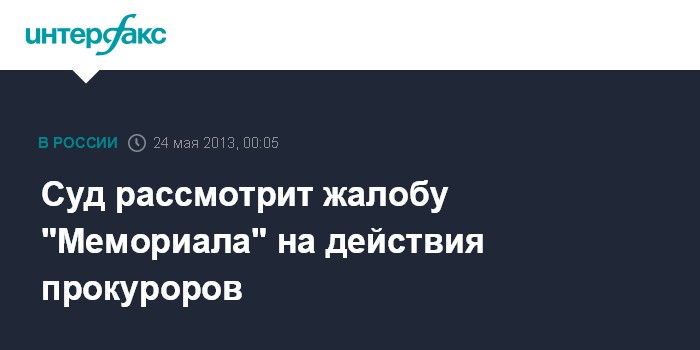 "Слушания по существу жалобы "Мемориала" на действия прокуратуры назначены на 24 мая", - сообщили "Интерфаксу" ранее в суде.