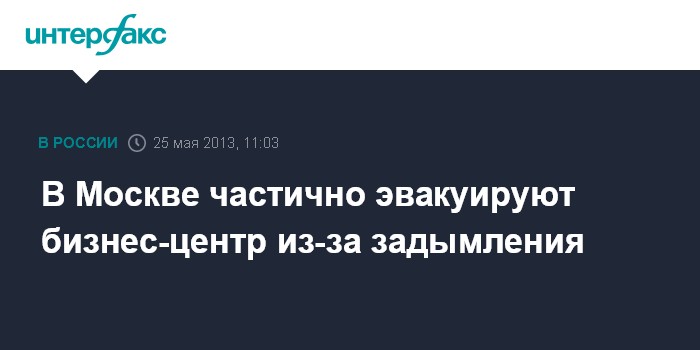 Москва. 25 мая. INTERFAX.RU - Бизнес-центр на северо-западе Москвы частично эвакуируют из-за задымления, сообщил "Интерфаксу" источник в правоохранительных органах.