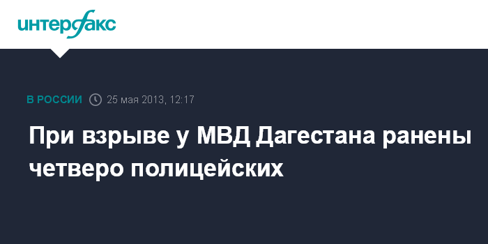 Москва/Махачкала. 25 мая. INTERFAX.RU - В МВД Дагестана подтвердили, что возле здания ведомства в субботу прогремел взрыв.