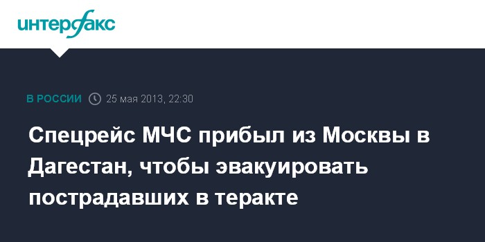 Москва. 25 мая. ИНТЕРФАКС - Самолет Ил-76 МЧС России с медицинскими модулями на борту приземлился в Дагестане, где, по последним данным, в результате теракта пострадали 15 человек.