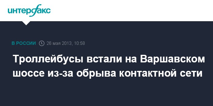 В департаменте уточнили, что повреждение контактной сети произошло у дома 26 по Варшавскому шоссе. "На место выехала аварийная бригада, работают девять дополнительных автобусов", - добавили в пресс-центре.