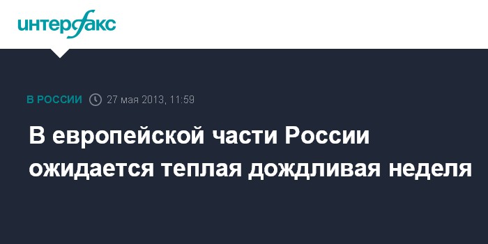Москва. 27 мая. INTERFAX.RU - Гидрометцентр прогнозирует на этой неделе дождливую, но теплую погоду в центре Европейской части России.