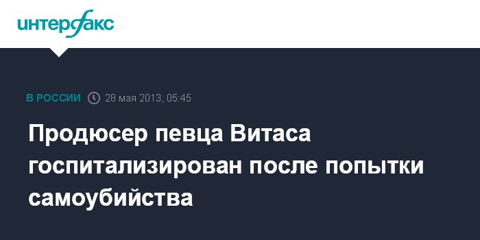 Продюсер певца Витаса госпитализирован после попытки самоубийства