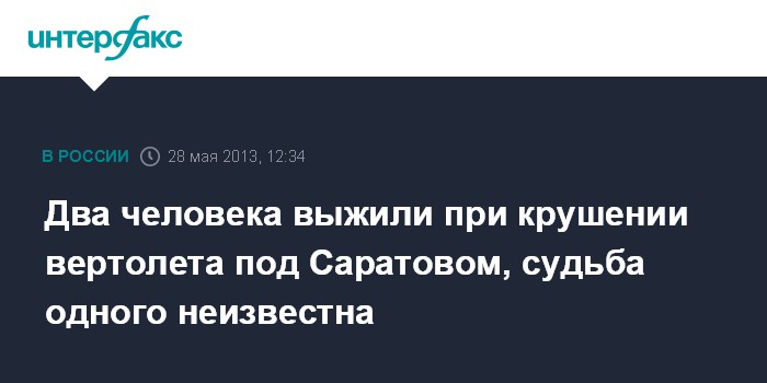Москва. 28 мая. INTERFAX.RU - При крушении военного вертолета Ми-8 в Саратовской области удалось выжить летчику-инструктору и курсанту летного училища, находившимся на борту, сообщил "Интерфаксу" источник в силовых структурах регион.