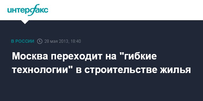 Москва. 28 мая. INTERFAX.RU - На всех московских новостройках будут использоваться "гибкие технологии", сообщил заместитель мэра столицы Марат Хуснуллин.