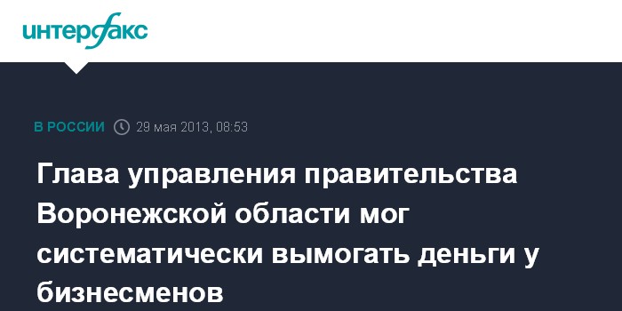 Глава управления правительства Воронежской области мог систематически вымогать деньги у бизнесменов