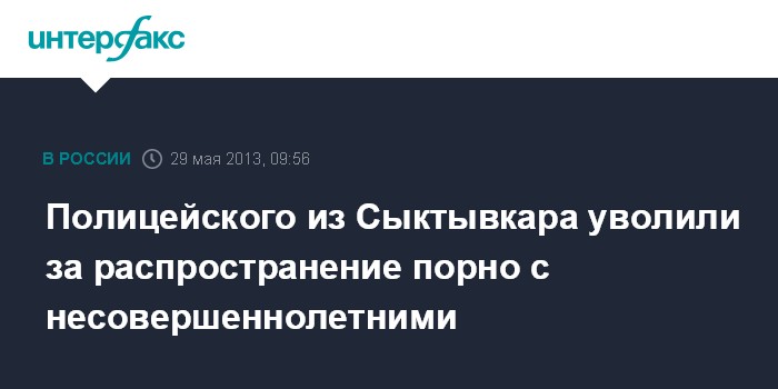 Сыктывкар. 29 мая. INTERFAX.RU - Полицейского из Сыктывкара уволили за распространение в Интернете порнографического видео с несовершеннолетними, сообщает пресс-служба регионального МВД.