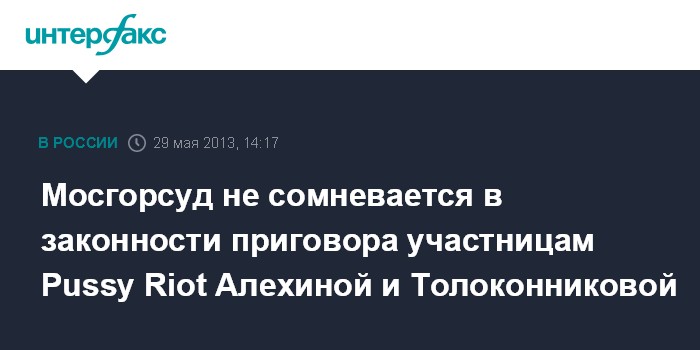 Мосгорсуд не сомневается в законности приговора участницам Pussy Riot Алехиной и Толоконниковой