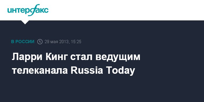Москва. 29 мая. INTERFAX.RU - Один из самых известных американских телеведущих Ларри Кинг приступил к работе на канале RT, сообщила главный редактор RT Маргарита Симоньян.