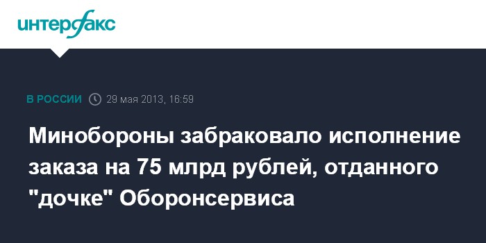 Минобороны забраковало исполнение заказа на 75 млрд рублей, отданного "дочке" Оборонсервиса