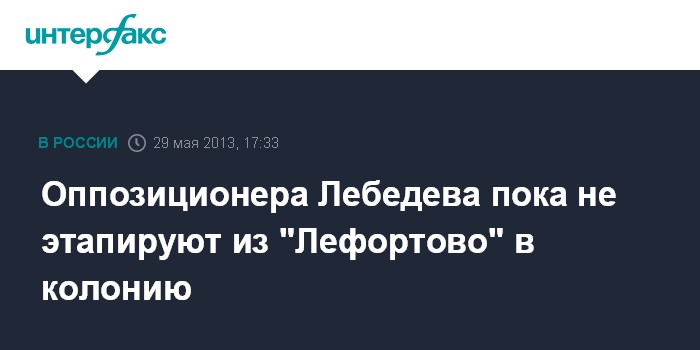 Москва. 29 мая. INTERFAX.RU - Оппозиционер Константин Лебедев, осужденный за организацию массовых беспорядков на Болотной площади и заключивший сделку со следствием, в ближайшее время не будет этапирован в колонию, а наказание продолжит отбывать в столичном следственном изоляторе "Лефортово".