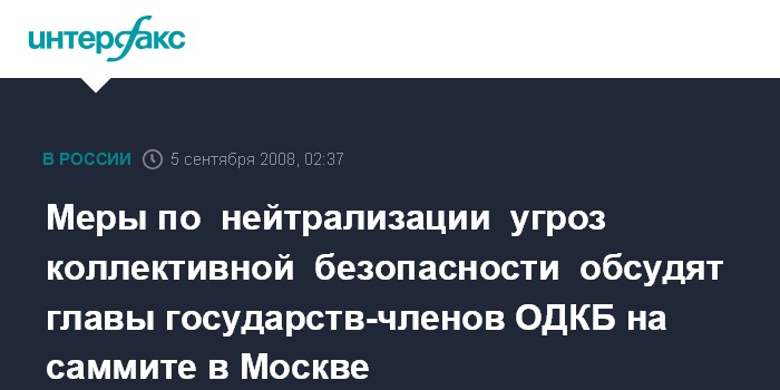 Москва. 5 сентября. ИНТЕРФАКС - Тенденции развития военно-политической обстановки и меры по нейтрализации возникающих вызовов и угроз коллективной безопасности обсудят главы государств-членов ОДКБ на саммите, который пройдет в Москве в пятницу.