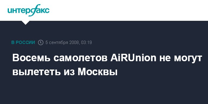 Москва. 5 сентября. ИНТЕРФАКС - В списке задержанных с вылетом из Москвы на настоящий момент числятся восемь рейсов компаний, входящих в альянс AiRUnion, передает телеканал "Вести-24" со ссылкой на информацию столичного аэропорта Домодедово.