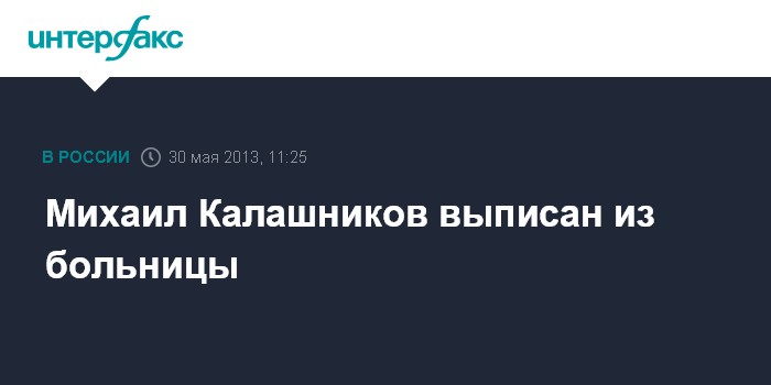 Ижевск. 30 мая. INTERFAX.RU - Легендарного конструктора Михаила Калашникова выписали из больницы, где ему проводили плановые профилактические мероприятия для поддержания здоровья, сообщил агентству "Интерфакс" в четверг референт конструктора Сергей Носачев.