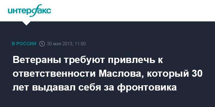 Ветераны требуют привлечь к ответственности Маслова, который 30 лет выдавал себя за фронтовика