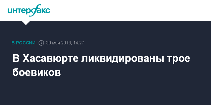 Махачкала. 30 мая. ИНТЕРФАКС-ЮГ - По предварительным данным, трое подозреваемых в участии в НВФ уничтожены в ходе штурма дома в поселке Юбилейный в Хасавюрте, сообщил "Интерфаксу" источник в правоохранительных органах Дагестана.