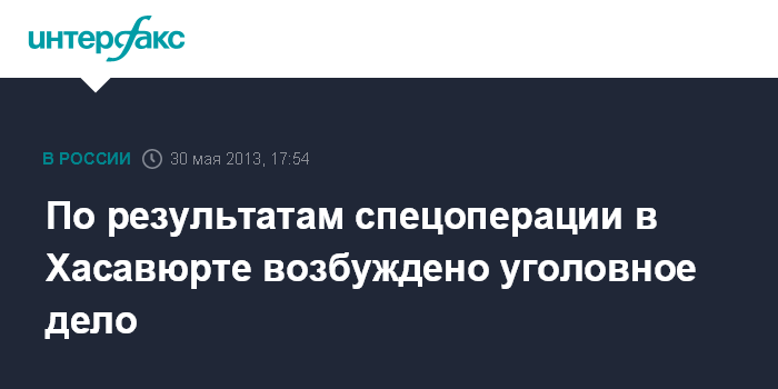 Махачкала. 30 мая. INTERFAX.RU - По результатам спецоперации в Хасавюрте, в ходе которой были убиты трое подозреваемых в участии в НВФ, возбуждено уголовное дело, сообщили "Интерфаксу" в следственном управлении СКР по Дагестану.