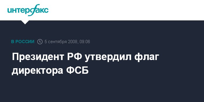 Москва. 5 сентября. INTERFAX.RU - Президент РФ Дмитрий Медведев своим указом утвердил описание и рисунок флага директора Федеральной службы безопасности РФ.