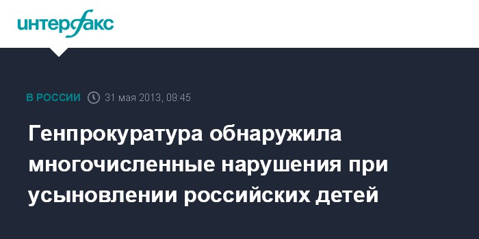 Москва. 31 мая. INTERFAX.RU - Генпрокуратура РФ выявила многочисленные нарушения при усыновлении российских детей-сирот, в том числе, иностранными усыновителями.