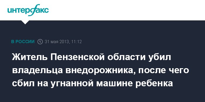 Житель Пензенской области убил владельца внедорожника, после чего сбил на угнанной машине ребенка