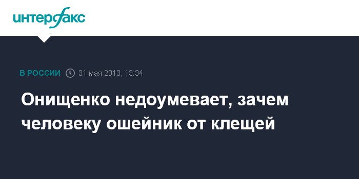 "Зачем человеку ошейник? Лучше одеться хорошо. Нужно, чтобы длинные рукава, чтобы они застегивались, чтобы внизу клещи были лишены возможности подползать под одежду", - сказал Онищенко на пресс-конференции в центральном офисе "Интерфакса".