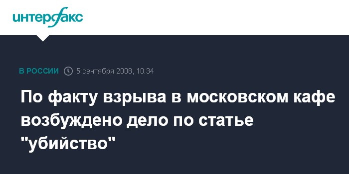 По факту взрыва в московском кафе возбуждено дело по статье "убийство"