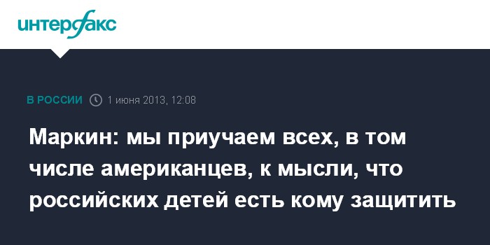 Маркин: мы приучаем всех, в том числе американцев, к мысли, что российских детей есть кому защитить