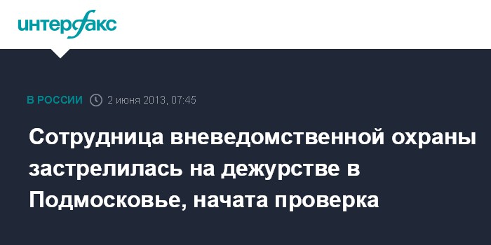 "В субботу примерно в 22:30 в Мытищинском следственном отделе ГСУ СКР по Московской области находившаяся на суточном дежурстве сотрудница вневедомственной охраны 1988 года рождения выстрелила себе в голову из табельного пистолета", - сказала И.Гуменная.