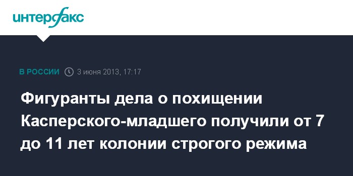 Москва. 3 июня. INTERFAX.RU - Хорошевский суд Москвы в понедельник приговорил к срокам от 7 до 11 лет колонии строгого режима четырех фигурантов уголовного дела, которые были признаны виновными в похищении сына предпринимателя Евгения Касперского Ивана.