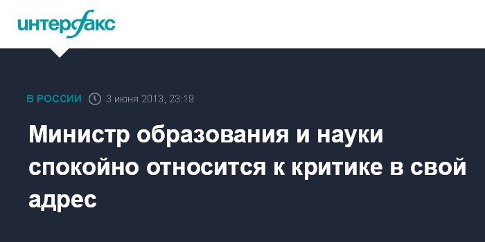 Москва. 3 июня. INTEAXRU - Министр образования и науки РФ Дмитрий Ливанов заявляет, что спокойно относится к критике в свой адрес и разговорам о своей возможной отставке.