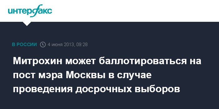 Москва. 4 июня. INTERFAX.RU - Лидер партии "Яблоко" Сергей Митрохин не исключает возможности побороться за пост мэра Москвы, если будут назначены досрочные выборы.