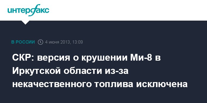 СКР: версия о крушении Ми-8 в Иркутской области из-за некачественного топлива исключена