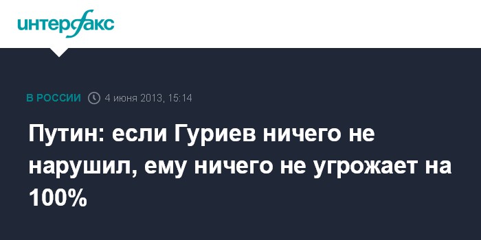 Если (Гуриев) ничего не нарушил, сто процентов ему ничего не угрожает. Сто процентов. И потом, он занимается экономической деятельностью - пускай себе занимается там, где он хочет и где ему больше нравится", - добавил Путин