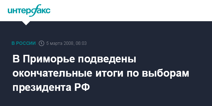 Владивосток. 5 марта. ИНТЕРФАКС-ДАЛЬНИЙ ВОСТОК - Избирательная комиссия Приморского края в среду на своем заседании утвердила окончательные итоги выборов президента РФ в регионе.