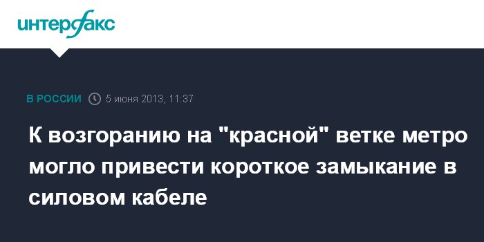 Москва. 5 июня. INTERFAX.RU - Причиной возгорания в московском метро, по предварительным данным, стало короткое замыкание, сообщил "Интерфаксу" источник в правоохранительных органах столицы.