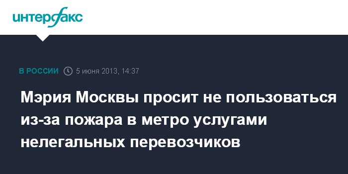 Мэрия Москвы просит не пользоваться из-за пожара в метро услугами нелегальных перевозчиков