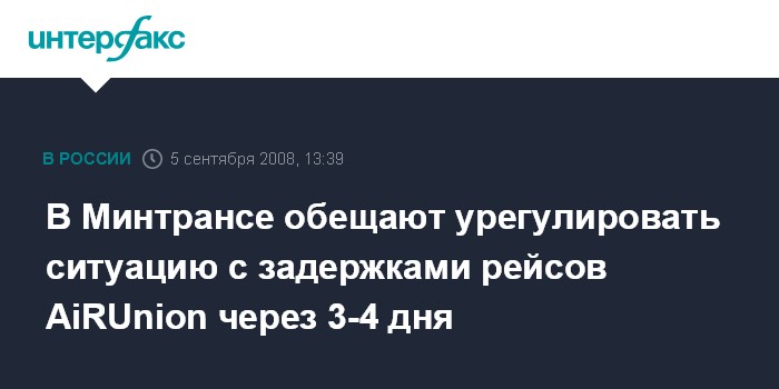 В Минтрансе обещают урегулировать ситуацию с задержками рейсов AiRUnion через 3-4 дня