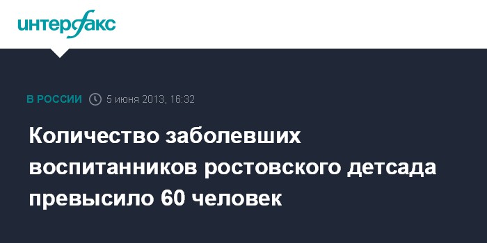 Ростов-на-Дону. 5 мая. INTERFAX.RU - Количество воспитанников детского сада №83 "Теремок" в Ростове-на-Дону, находящихся под наблюдением врача с признаками заболевания, увеличилось до 61 ребенка, сообщает в среду пресс-служба губернатора Ростовской области.