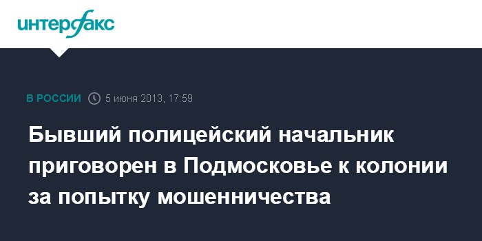 Бывший полицейский начальник приговорен в Подмосковье к колонии за попытку мошенничества