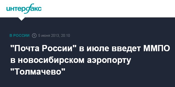 Новосибирск. 5 июня. INTERFAX.RU - ФГУП "Почта России" в июле откроет место международного почтового обмена (ММПО) в новосибирском аэропорту "Толмачево" для обработки экспресс-почты (Express Mail Service, EMS) из стран Юго-Восточной Азии и Китая, сообщил генеральный директор ОАО "Аэропорт "Толмачево" Евгений Янкилевич, выступая на форуме "Транспорт Сибири" в Новосибирске в среду.
